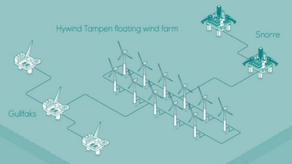 OMV is involved in the Hywind project via a 19% stake in the Gullfaks field; the project is led by Equinor. The project will directly connect five platforms in the North Sea to an offshore wind farm for their energy needs; this is the first such project in the world. By replacing the platforms' on-site electricity, currently generated by natural gas turbines, the project will help to reduce CO2 emissions by more than 200,000 tons per year.
